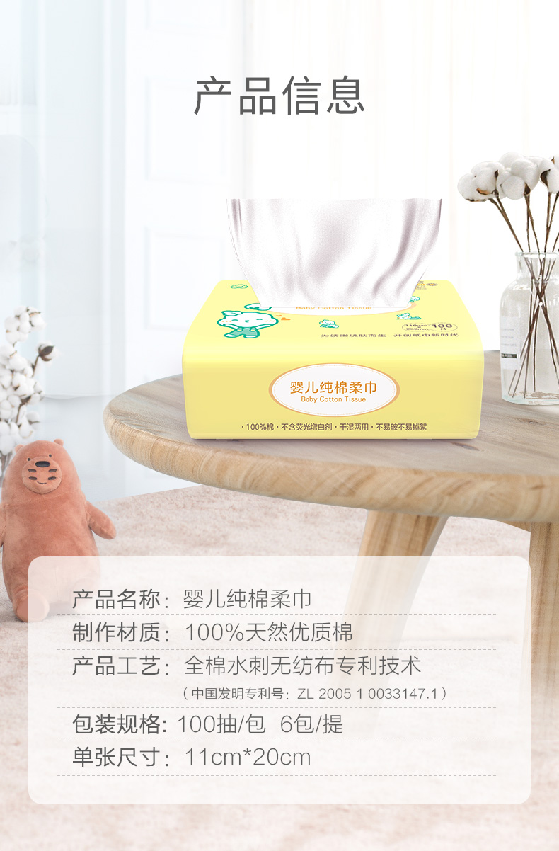 这款全棉时代 婴儿棉柔巾,规格为11*20cm。采用100%天然棉花制成,物理加工,无需任何化学添加剂成分,柔软亲肤,干湿两用,湿水后仍然保持强力,不破裂不掉絮。特别适合小宝宝敏感细嫩的肌肤。