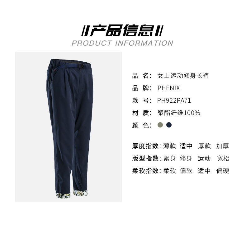 这款Phenix PH922PA71 女防泼水速干裤九分裤,属于Goid全球精选系列,采用TACTEEM独创的特殊纱线面料,外层还有环保安全拒水剂,拥有很好的速干透气效果,还具有高防泼水功能,带四向弹力,活动舒适性高,不束身。