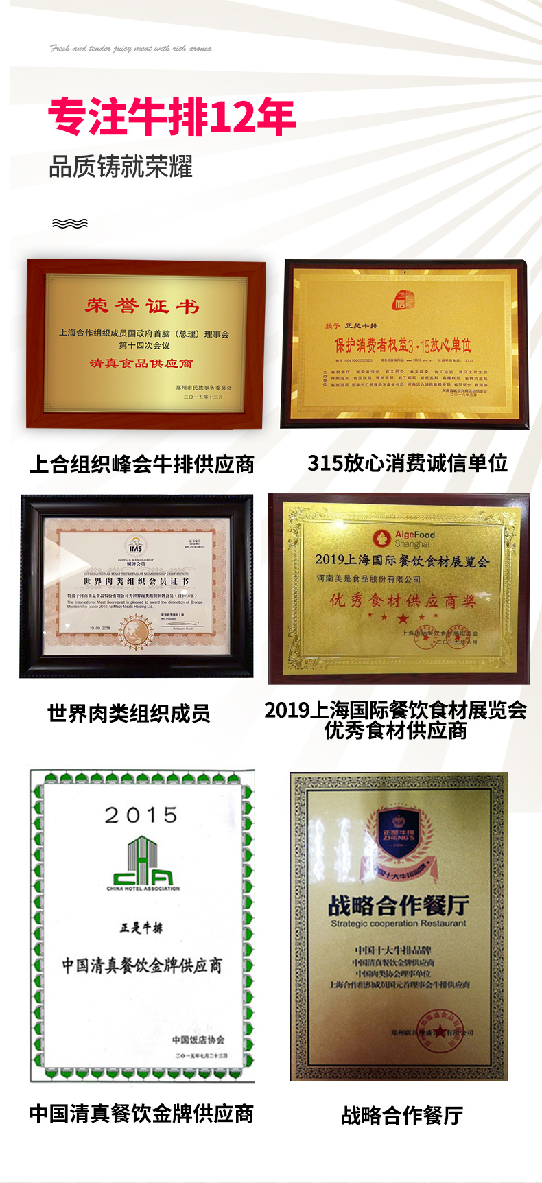 河南美是食品有限公司「官网」,是一家专注牛羊肉食品研发、生产、营销于一体的健康饮食探索企业。旗下涵盖“正是牛排”、“禾田谷飼”、“恒晨”、“澳新联邦”、“态会涮”等品牌。通过ISO9001质量体系及OHSAS18001、ISO14001、HACCP等相关认证。