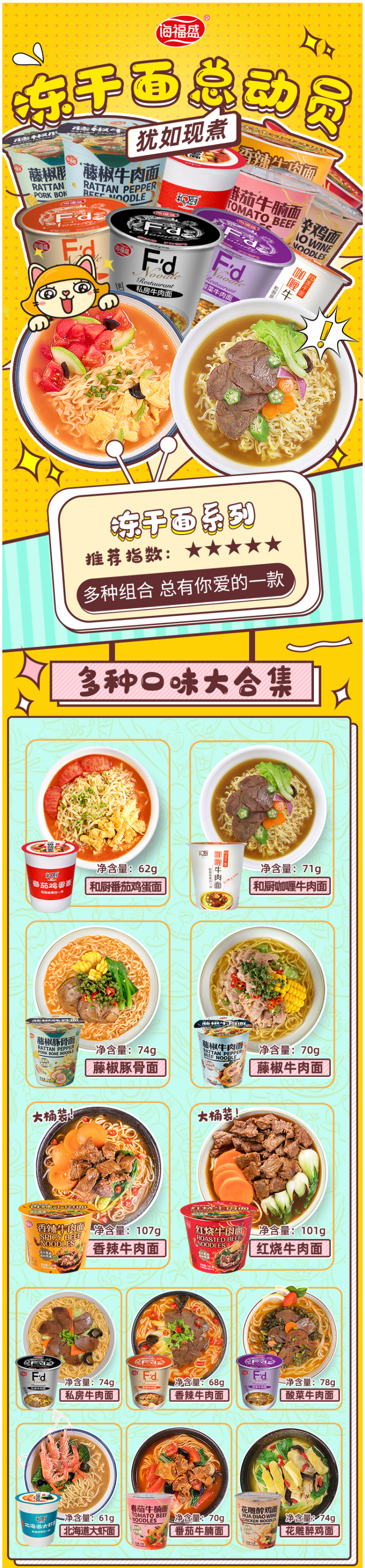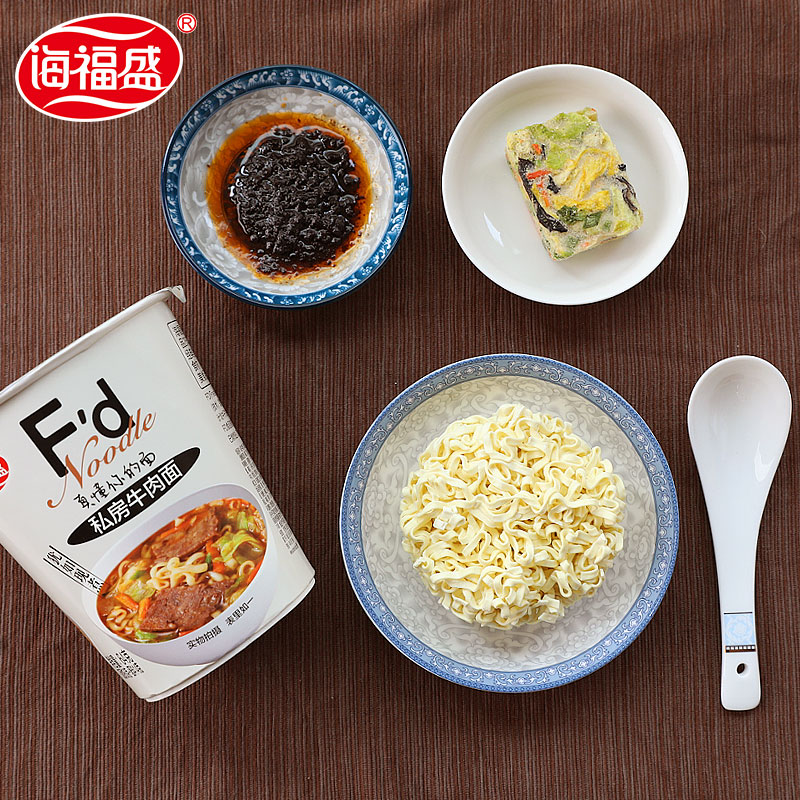 和厨的面,小编们都吃得七七八八了,海盛福的牛肉面也都试过,总得来说,FD的真的比油炸方便面好吃(个人口味),尤其是番茄鸡蛋款,小编觉得像是吃自己煮的,面条劲道爽滑,另外小编还花了十几块买过良品铺子的面,结果跟海福盛味道基本一样……