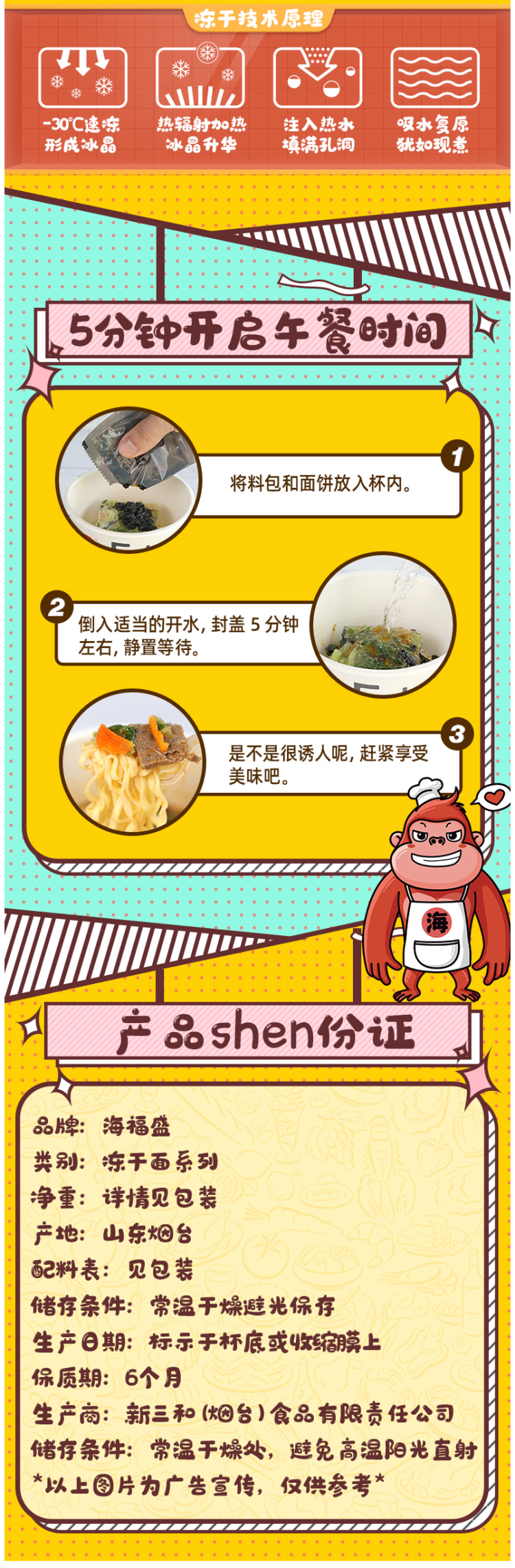 海盛福和和厨的生产商都是新三和,所以基本师出同门,不用搞歧视。新三和(烟台)食品有限责任公司,是肯德基、麦当劳、迪士尼的产品供应商,实力不俗。良品铺子、网易严选的冻干面也是委托的新三和生产的,看得出新三和的冻干实力了。