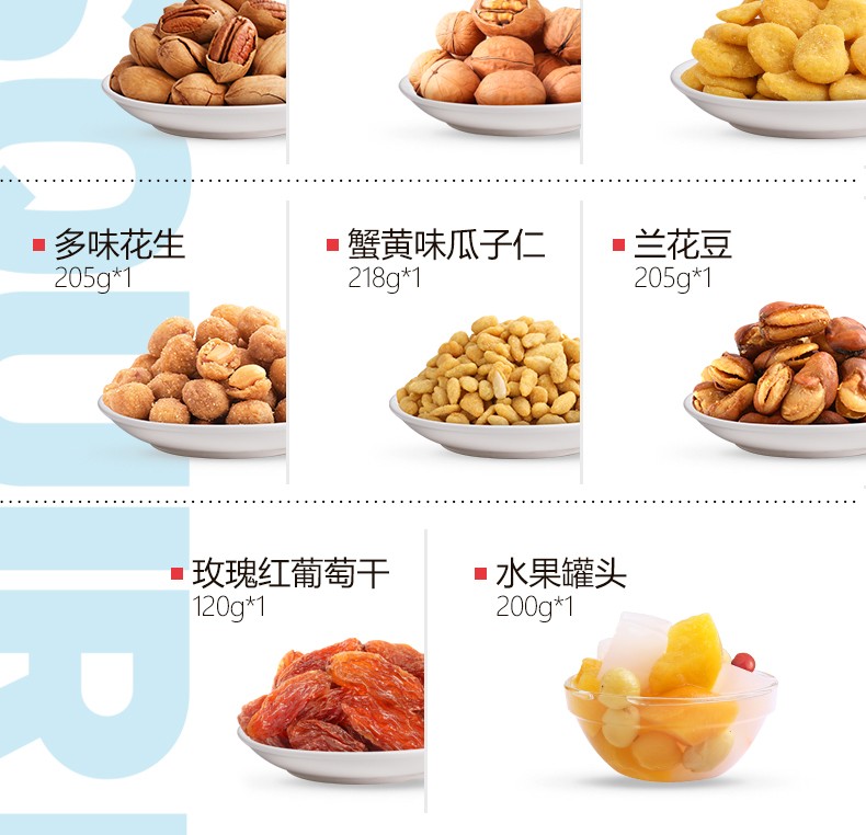 京东三只松鼠旗舰店,售价108元,下单立减40,再用15元优惠券,实付53元包邮到手。这款三只松鼠 坚果礼盒,8袋装,共1433g,内含:蟹香蚕豆205g、纸皮核桃120g、多味花生205g、兰花豆205g、玫瑰红葡萄干120g、碧根果160g、蟹黄味瓜子仁218g、水果什锦罐头200g。