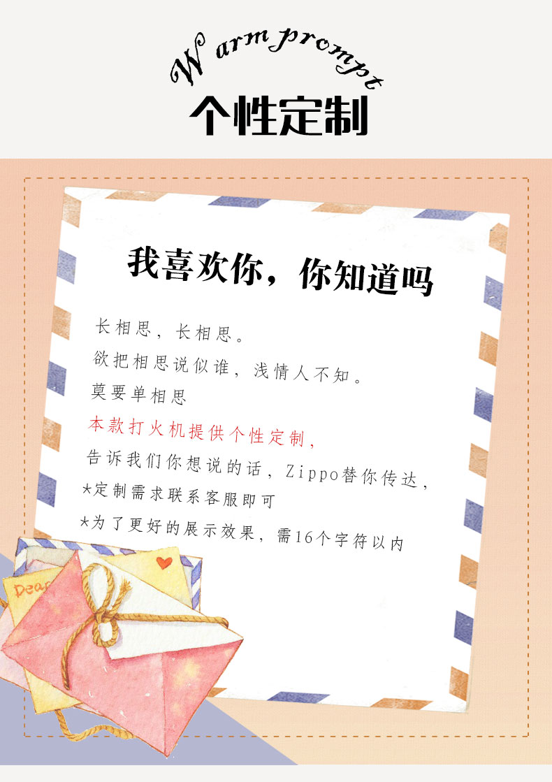 外壳是黄铜制成的,机身表面是看似随意杂乱的乱码图,实则内含甜言与蜜语。横看乱码,侧面倾斜着看是“我只喜欢你”,也可以自己定制语言。 彩印图案清晰耐磨,触摸不留指纹,高贵典雅。