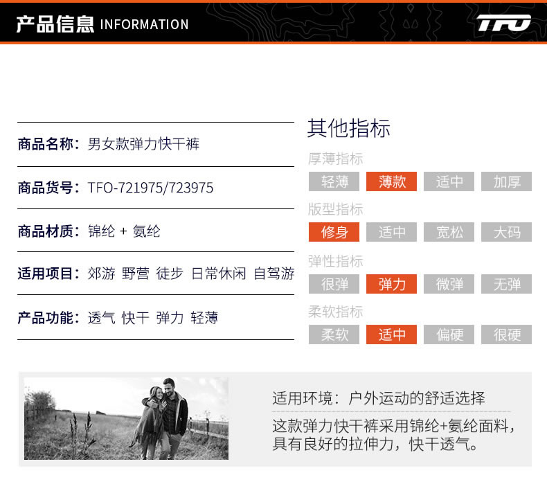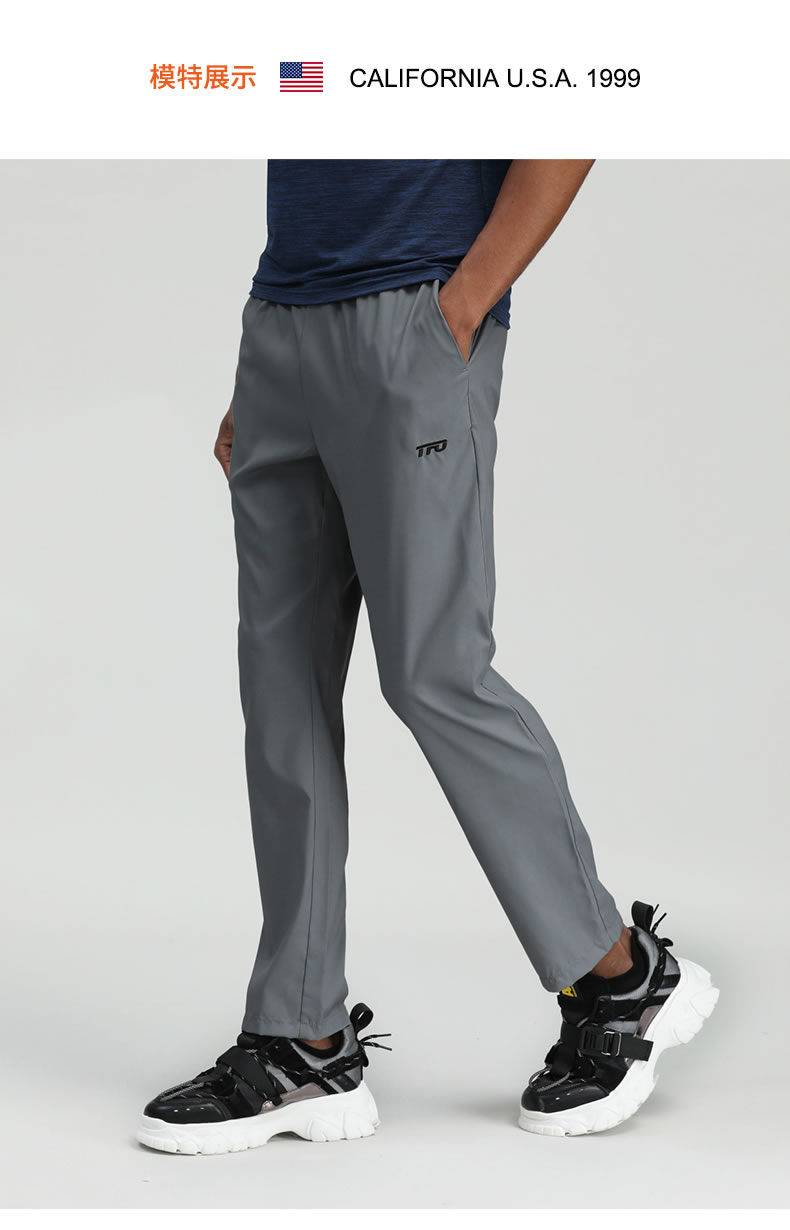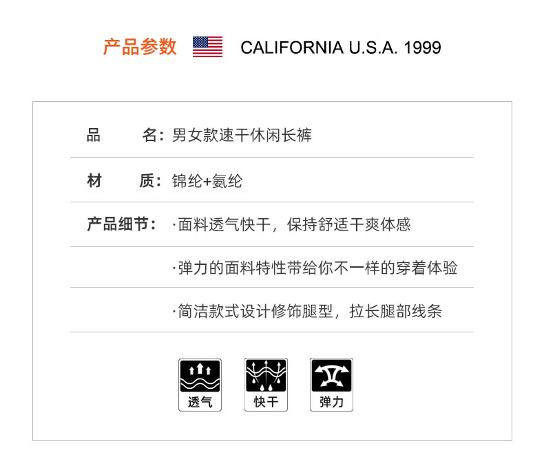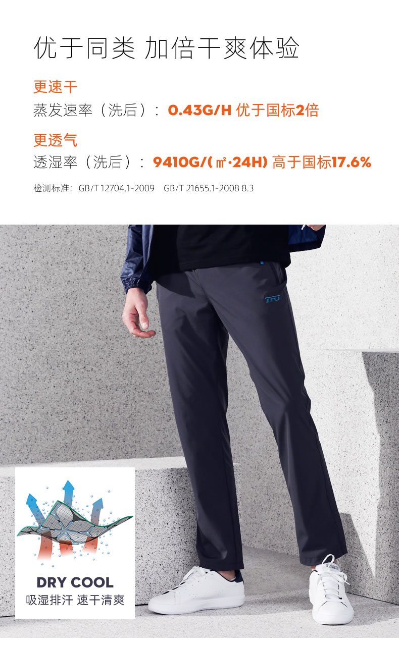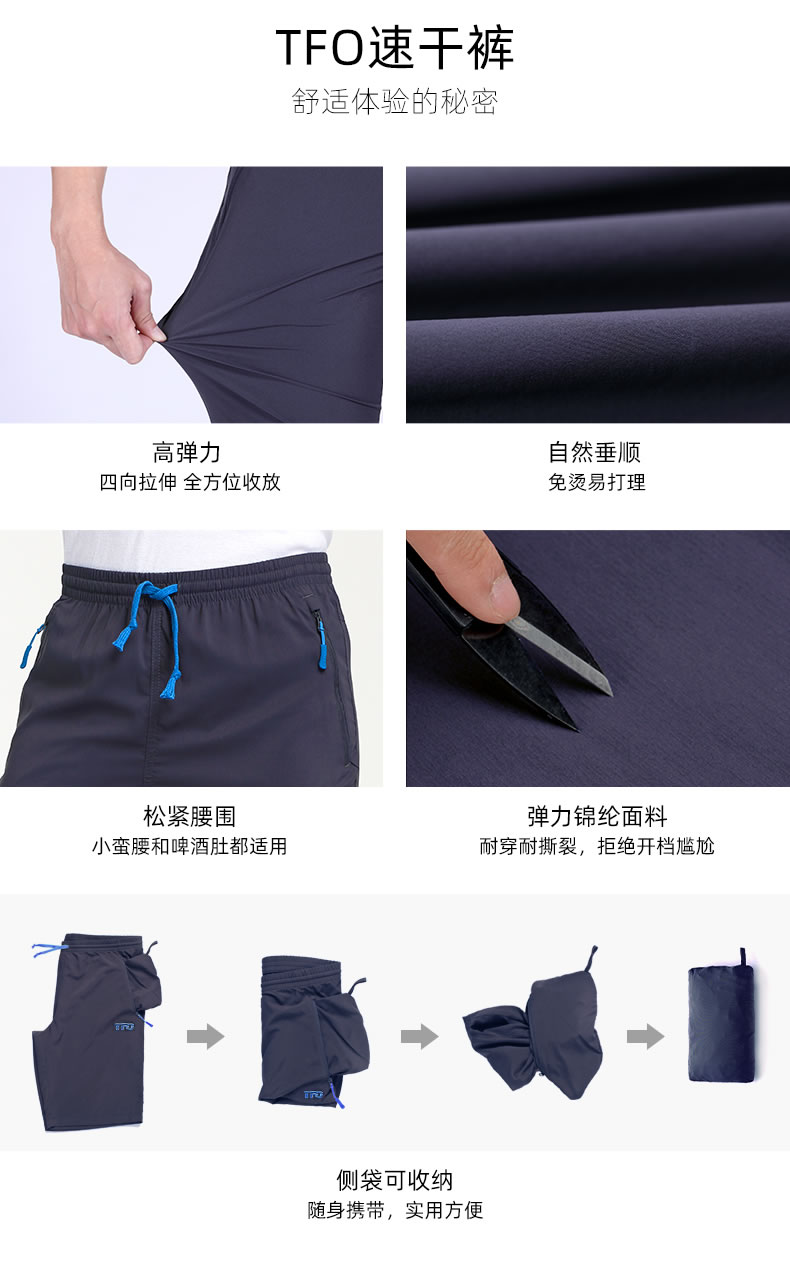 这款速干弹力运动裤,采用锦纶+聚酯纤维+氨纶面料,能快速导湿,将汗液排出体外,保持皮肤干燥舒适。能快速晾干,透气性好,导湿和排湿能力是国标2倍,出汗不粘身,触感冰爽,无感印标,穿着舒适。宽松版型,基本不挑身材。简约款式,休闲运动都适合穿。
