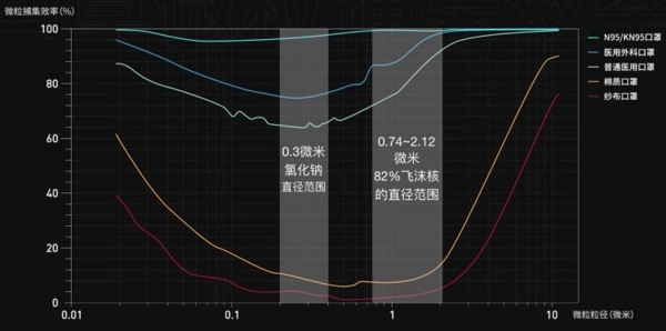 最难过滤的,是直径在0.3微米范围的颗粒物。因此,我国对口罩的检测标准,就使用0.3微米的氯化钠颗粒物作为检测指标。厚度不足0.1毫米的熔喷无纺布,可对0.3微米的氯化钠颗粒物过滤效果大于70%。