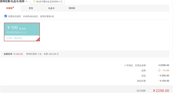 京东商城现在售价2598元,现在参加每满1000元减100元的活动,在领取100元优惠券,到手价2298元,有需要的网友可以看看。