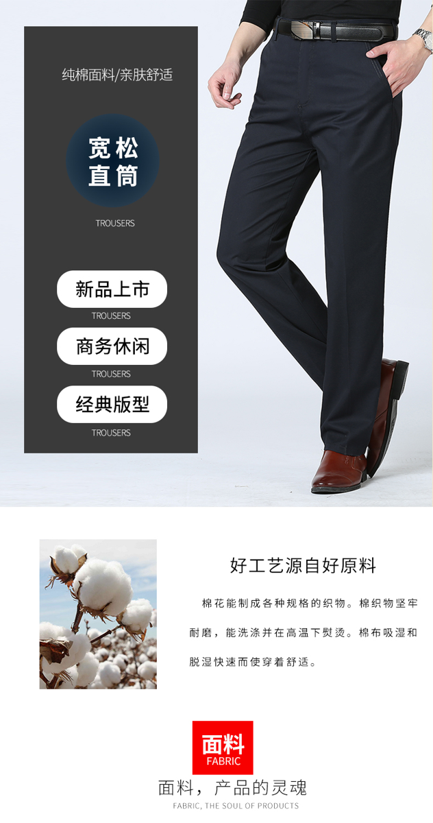 宽松版型,基本不挑身材。门襟处使用金属拉链,提拉顺畅,经久耐用;内里走线公正紧密,耐磨耐穿。经典直筒款式,日常休闲、商务场合都适合穿。