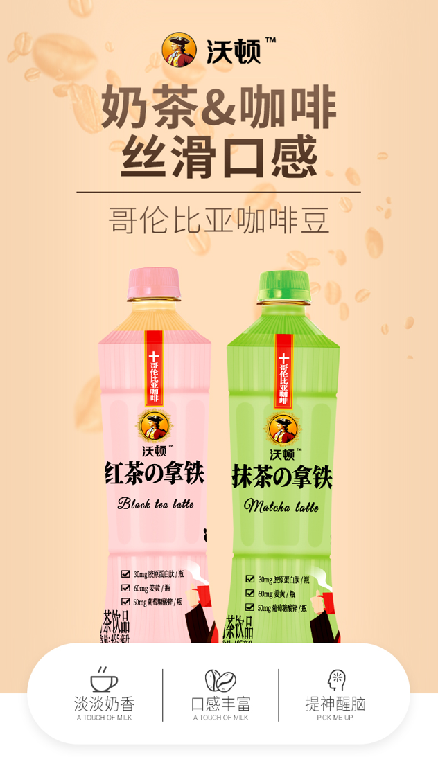 这款咖啡奶茶,精选哥伦比亚进口咖啡豆,经过烘焙、研磨、冷萃、香气回收等数道工序,成就咖啡纯正口味,在融合了优等茶叶和甄稀奶源,兼具咖啡的香醇与奶茶的丝滑,口感更加浓郁,回味无穷。有红茶拿铁、绿茶拿铁两种口味可选。