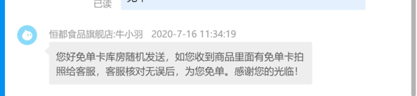 天猫恒都食品旗舰店89元,可领30元优惠券,实付59元到手,现在有免单活动,免单卡库房随机发送,如您收到商品里面有免单卡拍照给客服,客服核对无误后,为您免单。
