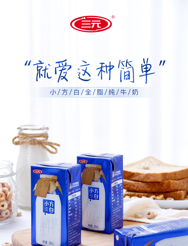 这款小方白纯牛奶是从1956年三元奶站的成立一直延续到现在的产品,优质乳蛋白含量3.2g/100g,原生钙含量110mg/100g,甄选100%生牛乳,纯天然无添加,口味浓郁,有效补充每日营养所需。