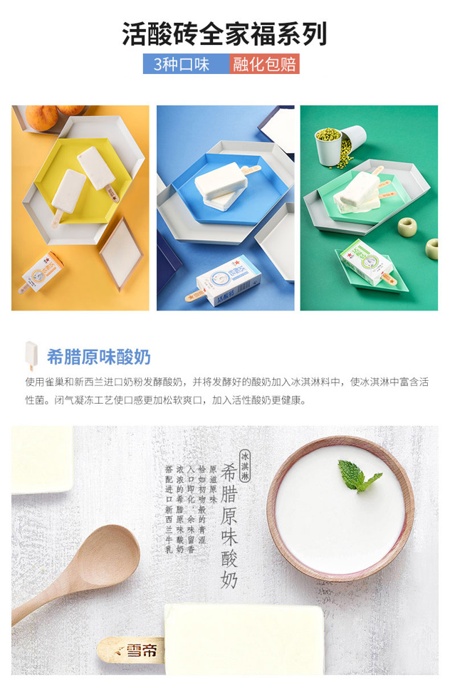 天猫雪帝湖南专卖店69.9元,可领30元优惠券,实付39.9元到手,超值10支装,12支券后49.9元。网红活酸砖雪糕,采用雀巢和新西兰进口奶粉发酵奶,加进冰淇淋,使每克冰淇淋富含有10万活性乳酸菌,闭气冻凝工艺,让口感更加松软爽口,低卡好吃不易胖。