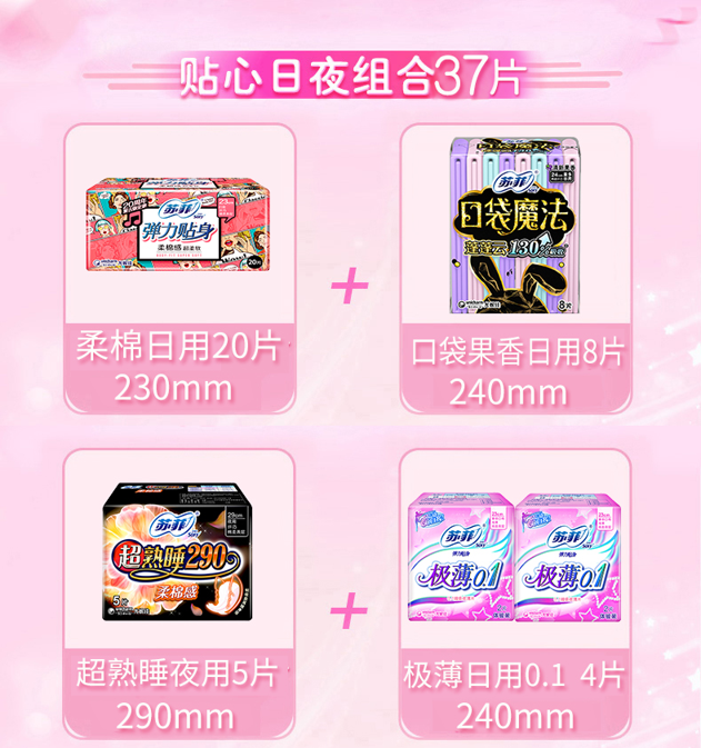 天猫梓汐家居专营店69.8元,可领40元优惠券,实付29.8元到手,是正价69.9元的4.3折;日夜37片组合装。关晓彤推荐,日用32片+夜用5片组合装,亲体设计,紧贴生理曲线,舒爽防漏,瞬吸纯棉超薄,持久干爽透气,令肌肤干净如初。周期组合套装搭配合理,日夜呵护领券链接点此
