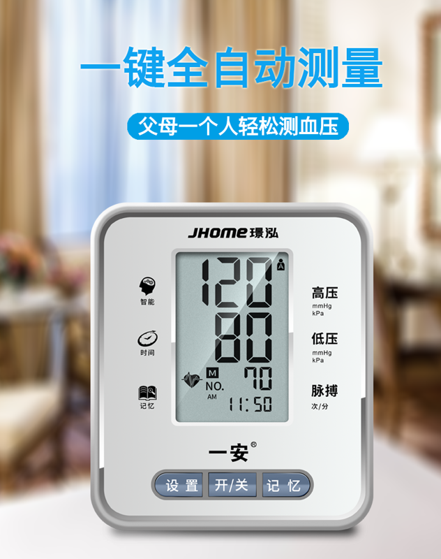 这款一安 家用上臂式全自动 语音电子血压计,智能语音播报、清晰大屏、双人90组记忆存储、测血压心率、2种电源适配、设置时间提醒。