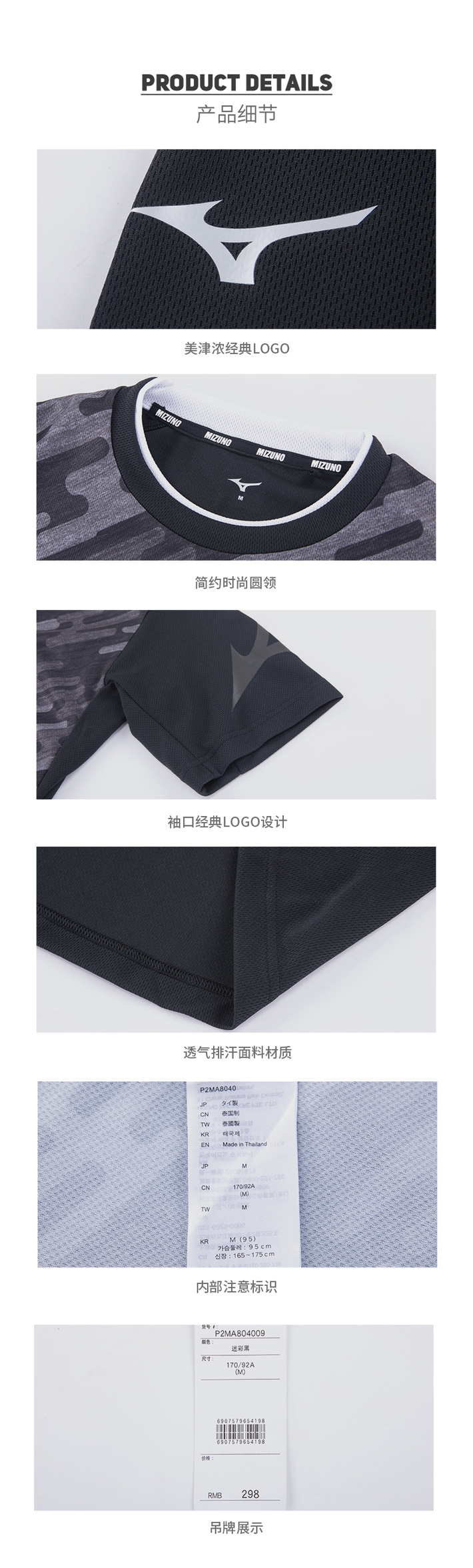 这款美津浓Mizuno 男速干T恤,采用100%聚酯纤维的珠地网眼面料,拥有不错的速干透气效果,适合各种运动场景,或爱出汗的人穿。