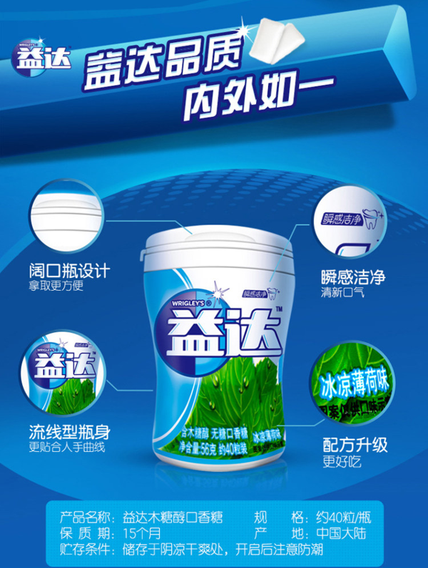 天猫aldi旗舰店59.9元,可领15元优惠券,实付44.9元到手,折合不到7.5元一瓶,超市里得10多块钱,草莓、哈密瓜2种口味可选。益达无糖口香糖,瞬感洁净,清新口气,来2粒让你尽享美食不留口气。规格:40粒/瓶*6瓶。