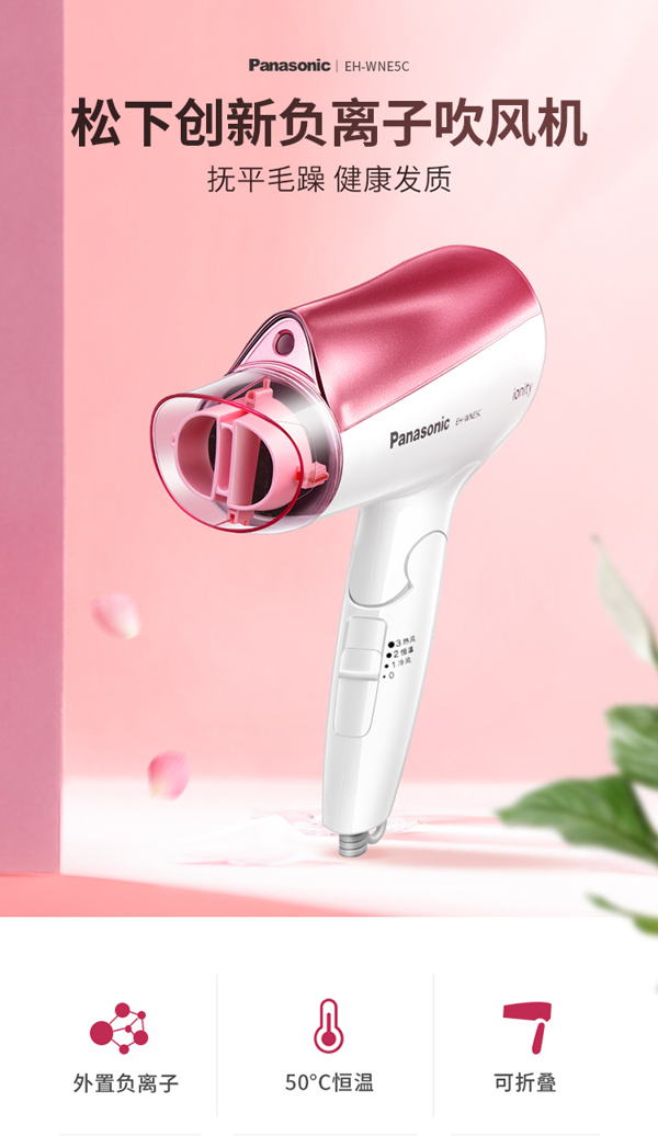 Panasonic松下电吹风拥有很好的口碑,网上多家媒体的实测效果,松下都优于戴森、飞利浦和博朗。这款松下负离子吹风机,带负离子功能,能够和头发中的正电荷,帮助减少毛躁和静电,使头发盈润服帖。