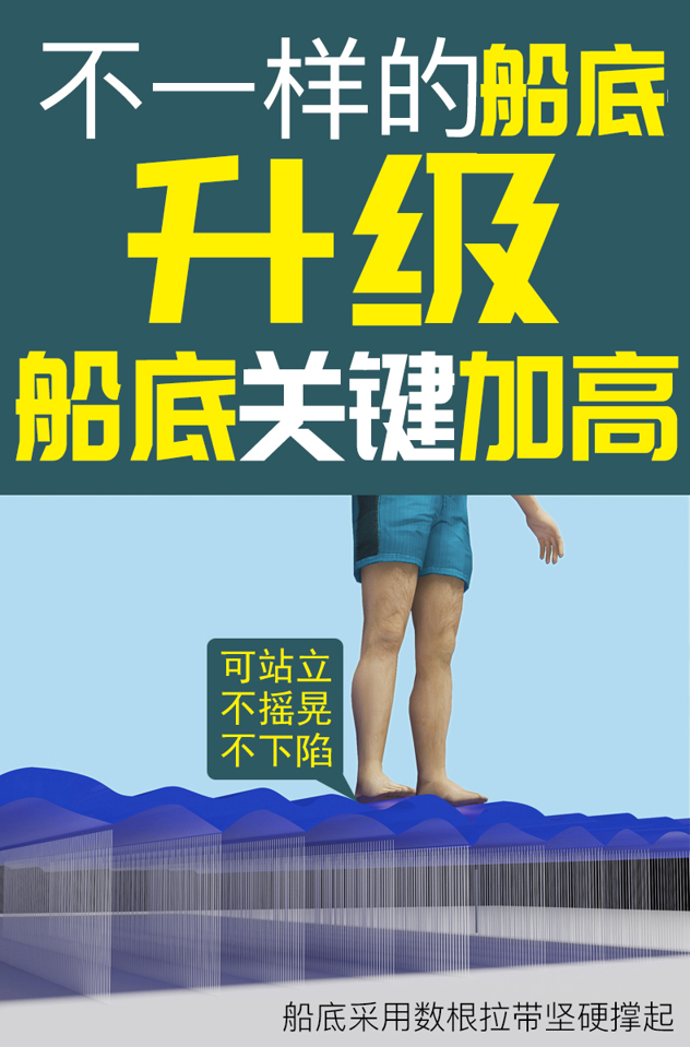 橡皮艇可以用来钓鱼、度假、游水、漂流等,实用又好玩。这款橡皮艇有硬底款可选,底部平整可站立,加厚PVC材质经久耐用,安全气囊,独立气室,破损也不怕。