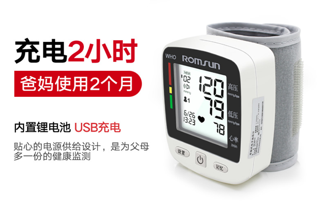 此外,还有90组的双人记忆空间,方便查询以往的数据。内置锂电池,USB充电,充电2小时,可用2个月。小巧便携,方便携带,随时随地都可以测量血压。