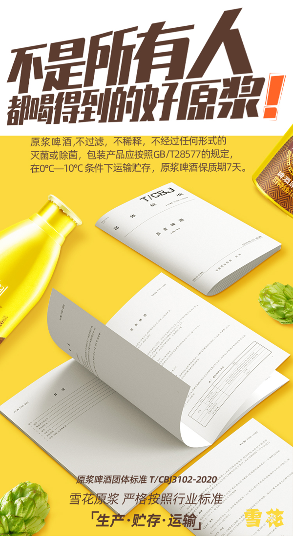 这款雪花 原浆壹号精酿原浆啤酒,规格:1L ,100%鲜活源液,直取发酵罐中的啤酒原液,不过滤、不经巴氏灭活工序,完美保留所有原始成份,保持啤酒最原始营养;零添加零色素零防腐剂,低温罐装,保留酵母活性,口味新鲜纯正,还原啤酒醇厚原味。酒精度≥4.5%VOL。