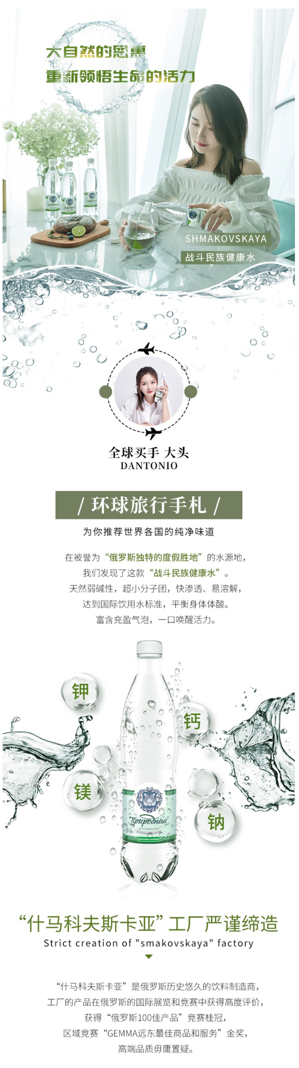 这款SHMAKOVSKAYA 矿泉水,是一款天然自带气泡水,并非人工注气的苏打水,俄罗斯原瓶进口,天然含汽水源,位于碳酸沉淀的过滤层,土壤中层层过滤和吸收微量元素,富含钾、钙、钠、镁等多种人体所需的矿物元素,气泡十足,口感绵密清爽。