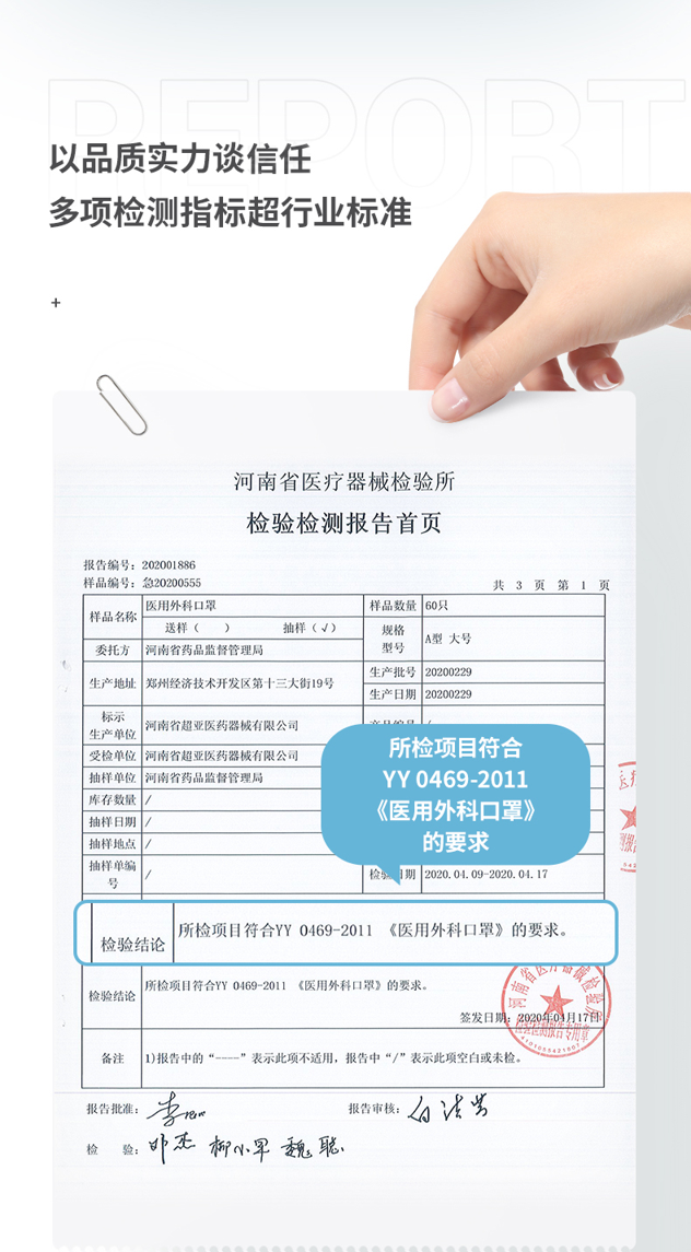 市面口罩品牌繁杂,挑选一定要注意医疗器械认证和生产企业资质。超亚口罩是河南省超亚医药器械有限公司生产,医疗器械注册证编号:豫械注准20202140192,符合YY 0469-2011《医用外科口罩》的要求,环氧乙烷灭菌,25g/m²加厚熔喷布,细菌过滤大于99.3%(三个样品最小值),远远高于行业标准规范95%,虽然价格相比普通医用要贵一些,但是拥有更严苛的防护!建议人员流通大、存在潜在风险地区使用。