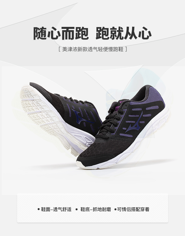 这款美津浓Mizuno 女透气经典跑步运动鞋,鞋面是网眼织物,有很好的透气效果,上脚也贴合舒适。橡胶鞋底,结实耐磨,鞋底配以纹路设计,拥有更好的抓地力。
