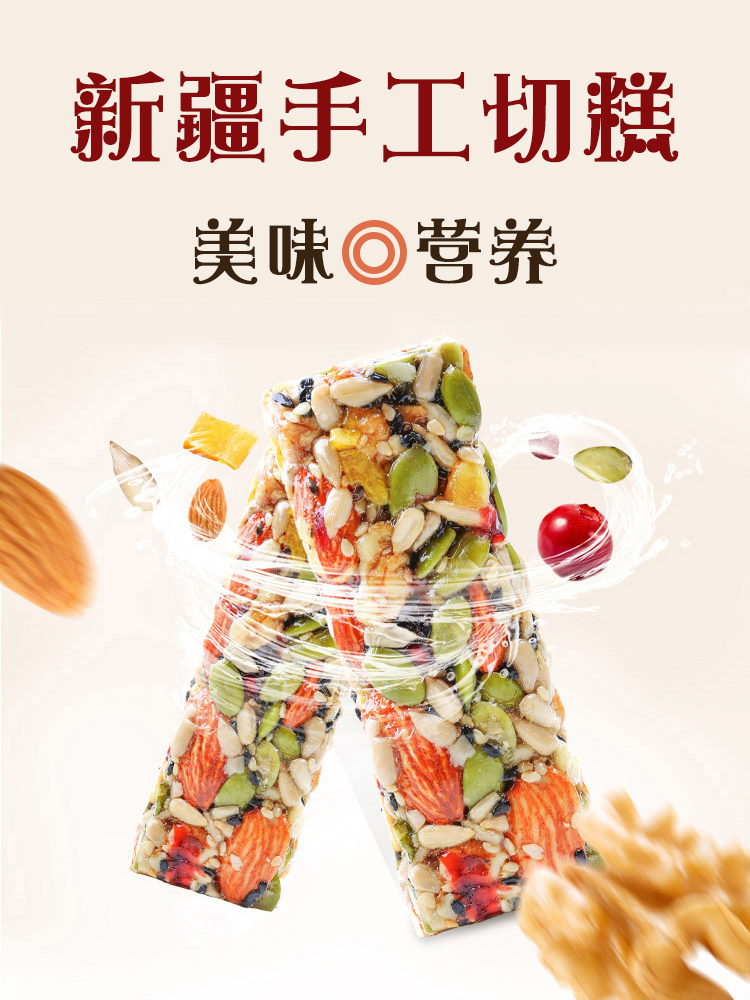 在制作过程中不添加人工色素、防腐剂、甜味剂,规整的小方形,独立小包装,规格是500g。因为切糕是人工做成的,不能做到完全的均匀,所以每一块切糕都是独一无二的。同时切糕中还富含人体所必需的各种营养成分,包括各种氨基酸和微量元素,除了好吃,还对人体有益。
