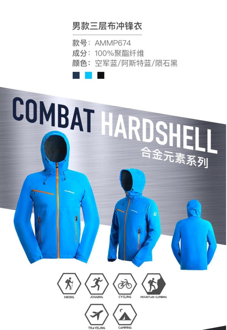Amurcamp合金元素系列拥有15000mm防水指数,和5000g的透气指数,高强度抗撕裂面料,所有缝线位置都经过热封压胶处理,不会从针孔渗水。主拉链和侧边口袋拉链都是防水的。作为对比,国内品牌的冲锋衣多是5000mm水压和3000g透气,因为国标的要求就是5000mm水压,多数时候防水就够了。