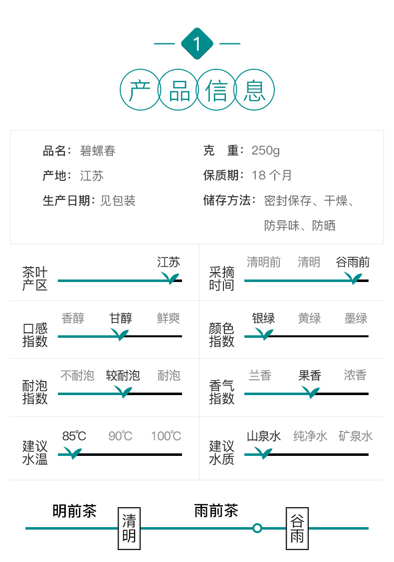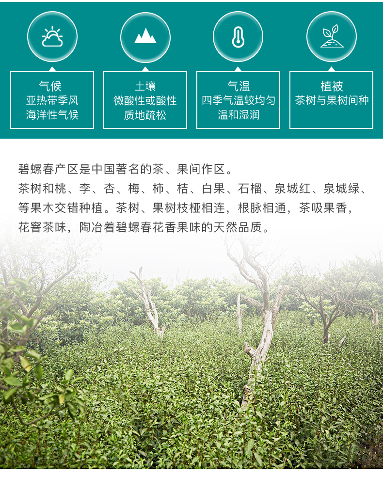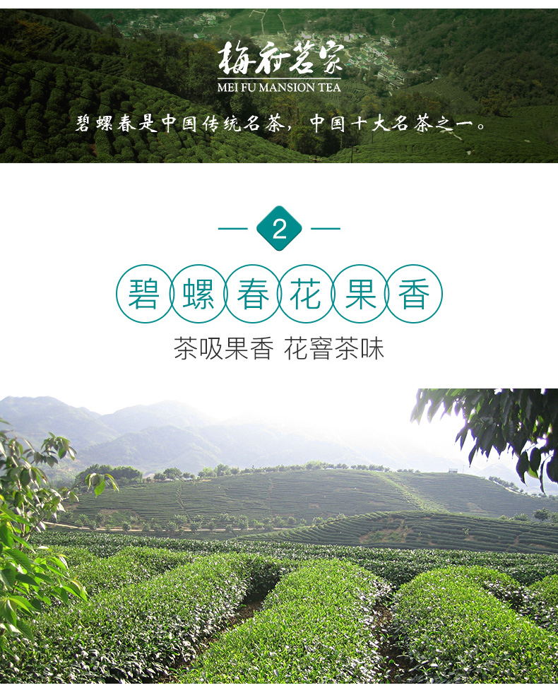 梅府茗家为杭州品道茶叶有限公司旗下核心品牌,公司在梅家坞、狮峰山设有原生态茶园、无公害基地。这款梅府茗家 2020年新茶浓香型绿茶碧螺春,规格: 250g,干茶卷曲成螺,白毫披覆,茶汤黄绿澄澈,馥郁果香。