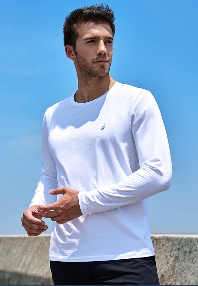 这款诺帝卡男休闲居家T恤,采用93%精梳棉+7%弹力氨纶弹制成,面料经过深度除毛,相比于一般的棉,布面自然光亮细腻,触感更柔软且不失挺括,亲肤性也更好,吸湿透气,抗静电无刺激。
