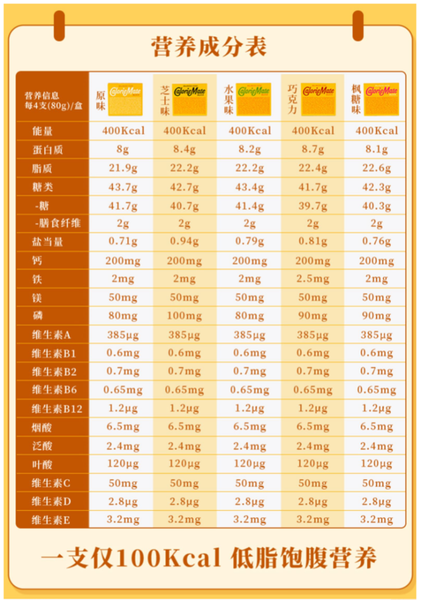 这款大冢制药 Calorie Mate 低脂护胃营养代餐饼干,日本原产,富含人体必需五大营养素:蛋白质、脂质、糖分、维生素及矿物质,每盒提供日均所需维生素的一半左右,1片100Kcal,1盒4支装,可随时随地补充能量,而且吃了不发胖,关键是味道也不错,比一般的代餐饼干要好吃不少。