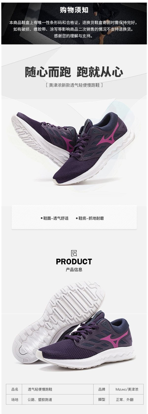 这款美津浓Mizuno J1GD198253女轻便透气慢跑步鞋,鞋面是网眼织物,有很好的透气效果,上脚也贴合舒适。橡胶鞋底,结实耐磨,鞋底配以纹路设计,拥有更好的抓地力。