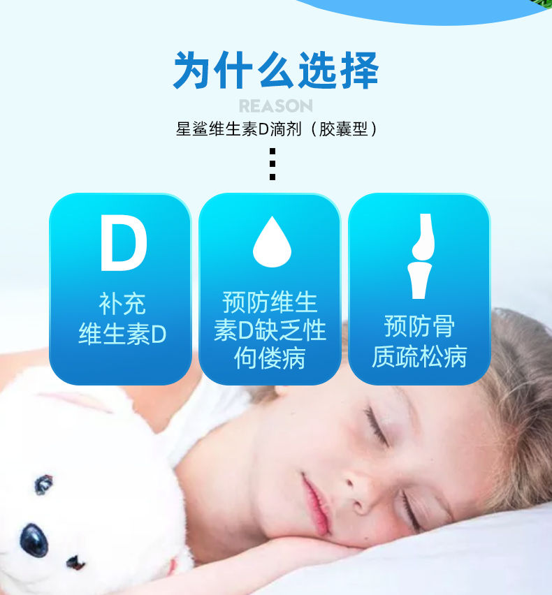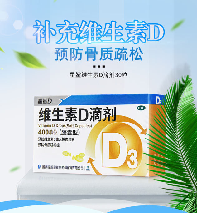 星鲨维生素D滴剂,知名品牌。补充维生素D,给宝宝补充VD和AD的,预防佝偻病,促进钙吸收~降低感冒!一盒30粒。