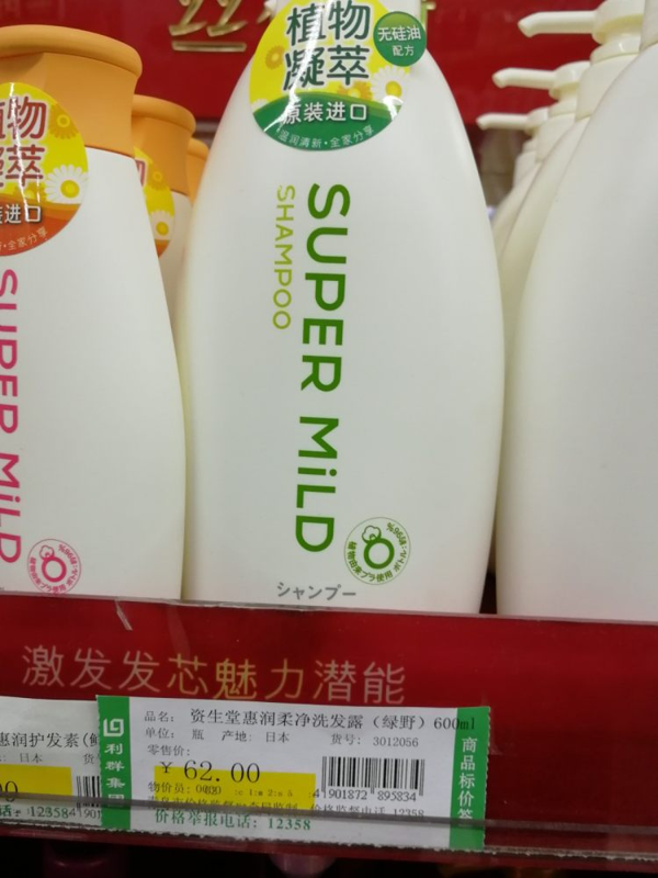 ▲利群超市惠润洗发水62元/瓶。