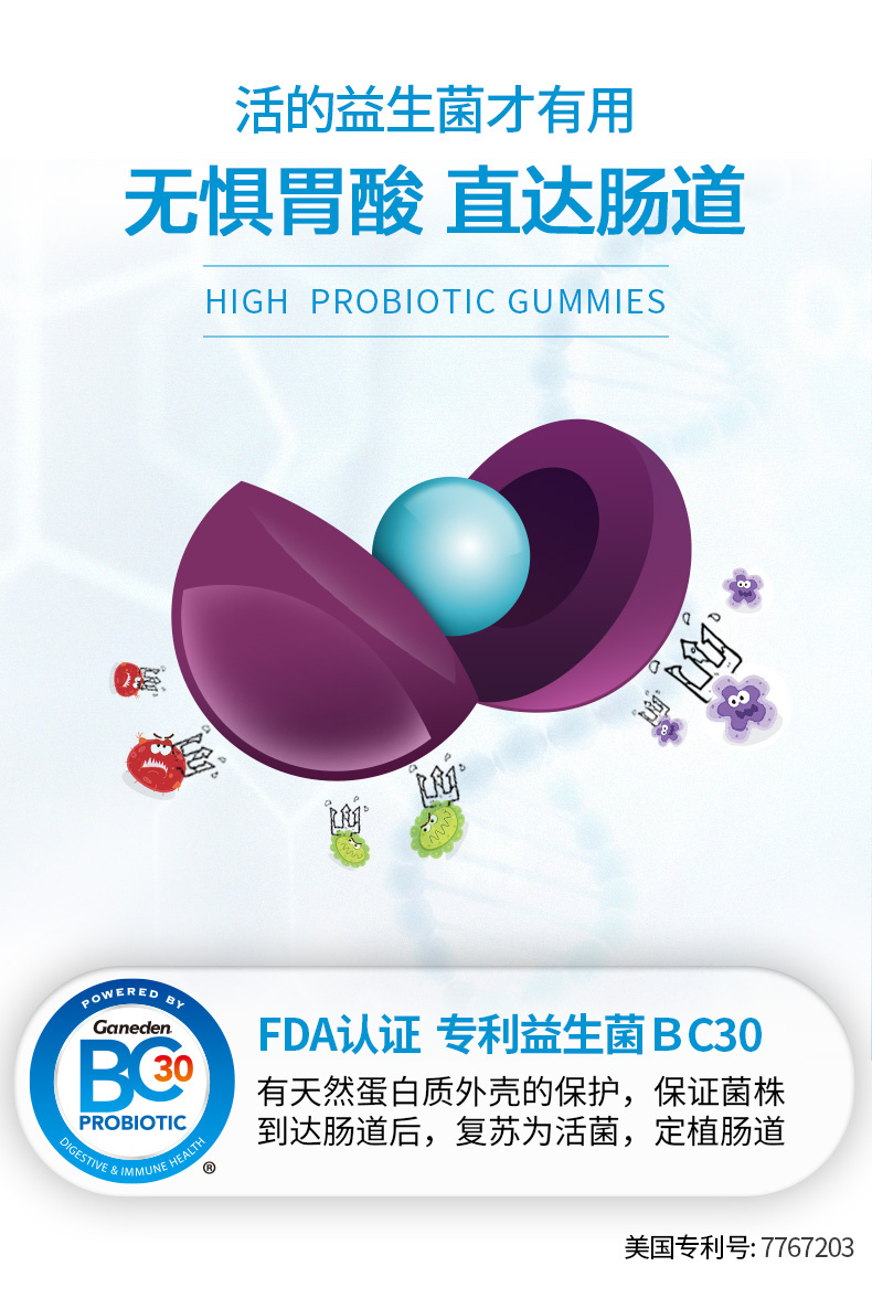 而BC30却与众不同,BC30益生菌:凝结芽孢杆菌GBI-306086,由保护性蛋白质外壳包裹,能帮助它免遭腐蚀性胃酸的破坏,因此它可以随时根据人体需求而发挥作用,研究表明,它的存活率比酸奶和其他主要益生菌补充剂中的益生菌高出100倍。
