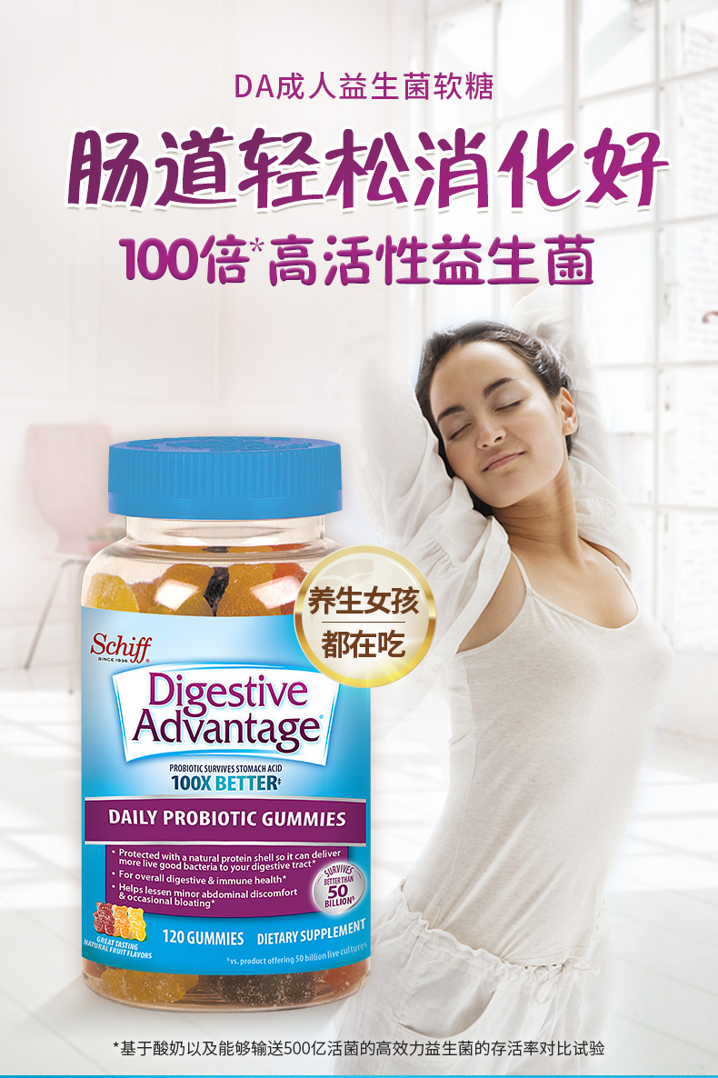 Schiff的Digestive Advantage益生菌产品通过了美国国家卫生基金会和消费者卫生保健产品协会的认证,而Move Free系列产品则是美国关节炎基金会荣誉赞助商。