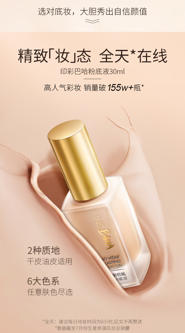 累计热卖164+万瓶。8色系任选,丝绒慕斯质地,轻盈薄透,上妆成膜,防水防汗,8小时长久待状,清爽不黏腻,干皮、油皮、混油肌都适合。时尚磨砂瓶身,泵头设计,取量自主方便。