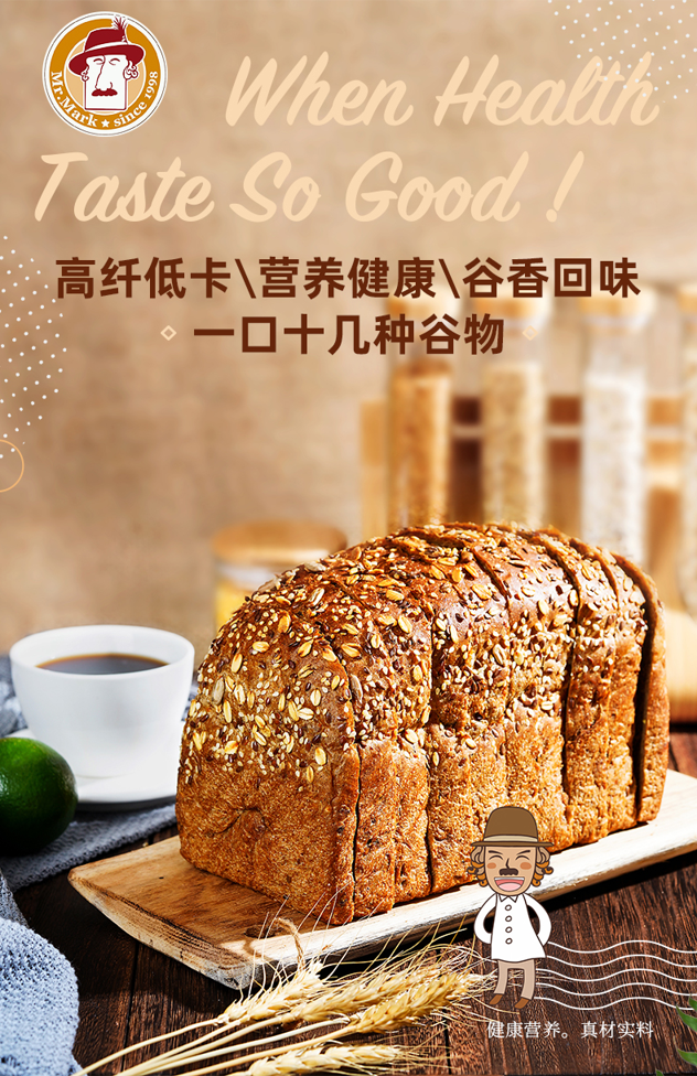 马可先生面包由王丽珠女士创立于1998年,总部位于台湾,主打“高纤、低油、低糖”特色,依靠“健康营养、真材实料”的健康品质赢得市场。