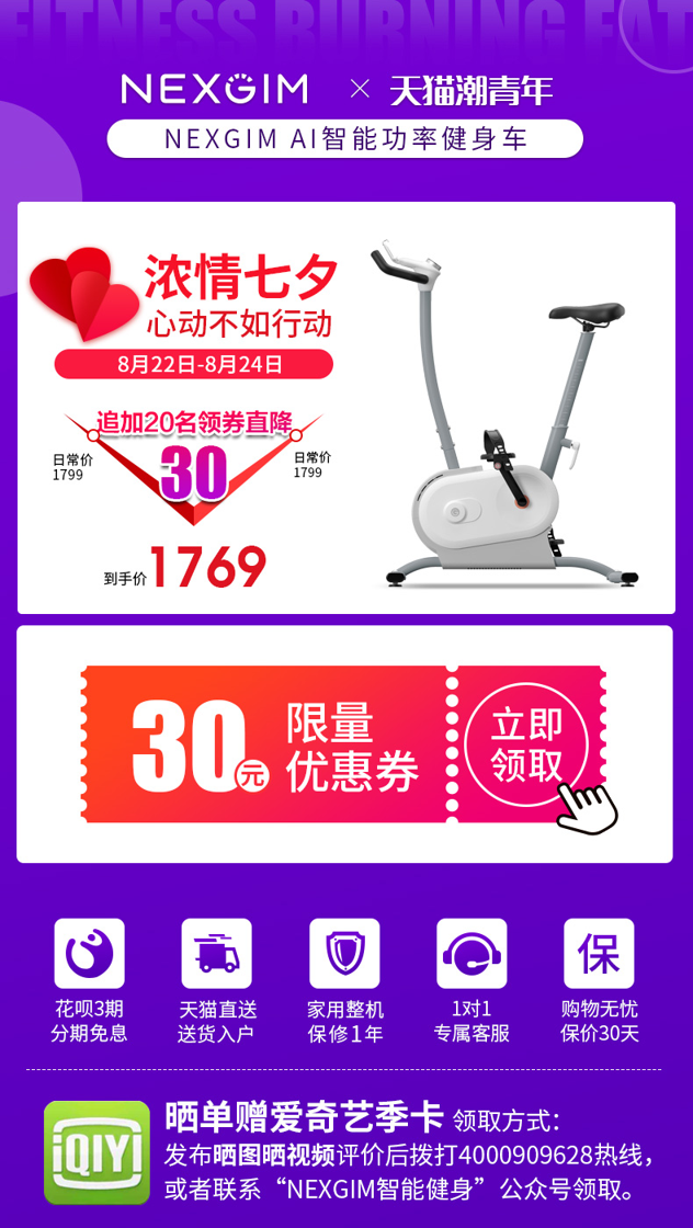 发布晒图评价后,拨打4000909628热线或者联系“NEXGIM智能健身”公众号领取。