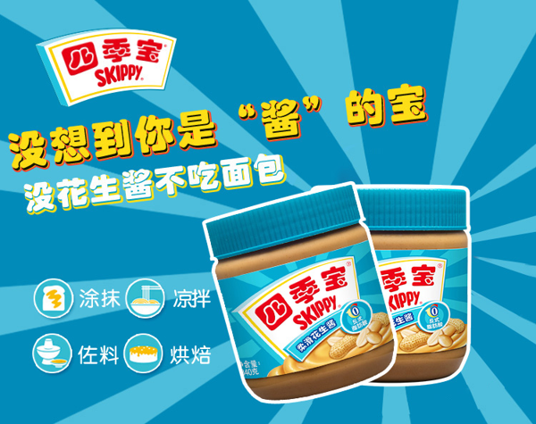 天猫四季宝旗舰店58元,可领20元优惠券,实付38元到手,是正价73.8元的5.1折;0反式脂肪酸更健康。两罐装,超值!拧开瓶盖那一刻就沦陷了!!满满花生香气,0胆固醇,营养更健康,卷饼、水果酸奶、吐司、咖喱饭都用得上,小朋友爱上吃饭的秘密领券链接点此