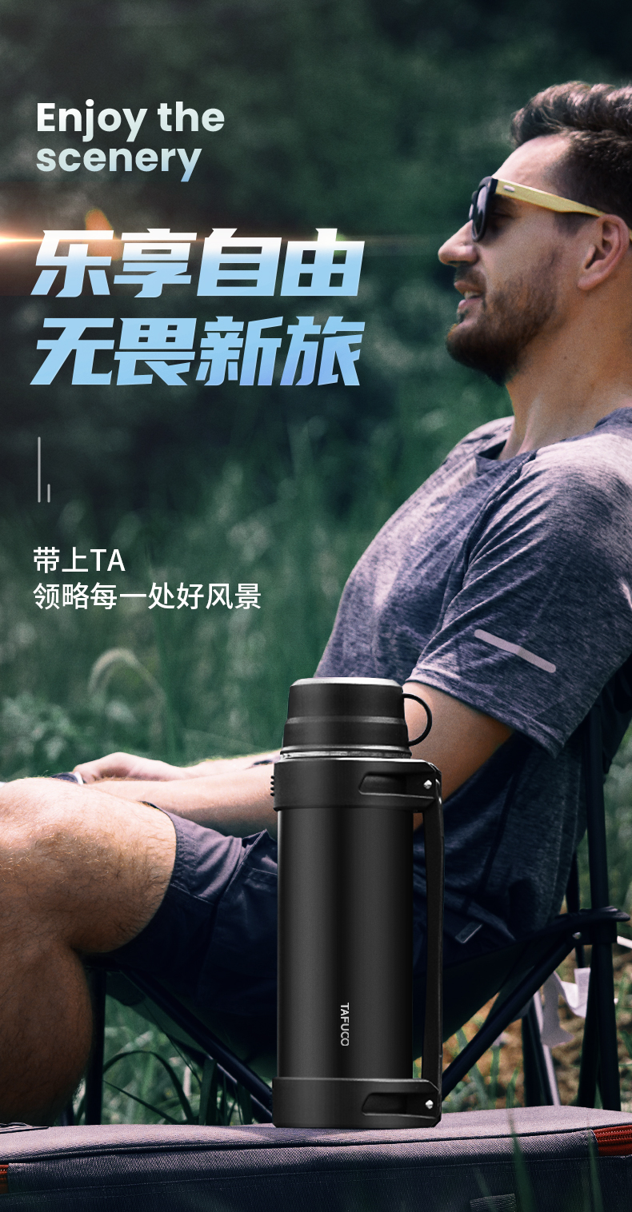 这款日本TAFUCO泰福高超大容量保温壶型号,严选304不锈钢材质,结构坚固健康安心,304不锈钢内盖,搭配食品级接触PP接触,更健康且易于清洁。2000ml大容量,解决你全天饮水需求。双层抽真空技术,隔离外界温度,有效阻隔温度传导,24小时强劲锁温。便携背带,外出携带方便,便携手提,提拿上虞市,倒水更便捷。手指一划,即可轻松开盖。容量:2L,重量:1080g。