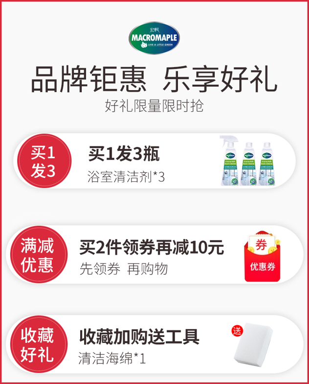 这款宏枫 生物酶瓷砖清洁剂,使用生物酶高新技术,内含活性分子,能高效分解顽固污渍、不伤材质,只需轻轻一喷即可,无刺激性气味,适用于水龙头水垢、淋浴房玻璃、前面瓷砖、金属表面水垢、浴室锈迹。