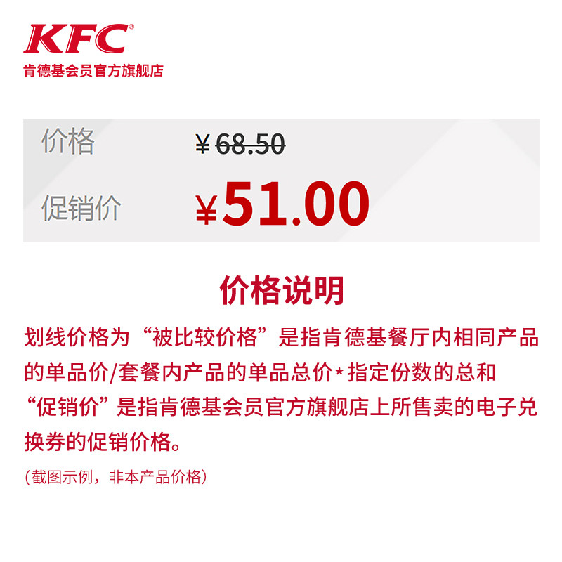 天猫卖家肯德基会员官方旗舰店 原价高达142.00,现价99.00 。近期低价,感兴趣的买买不容错过,商品最近销量602,喜欢的买买赶紧出手吧