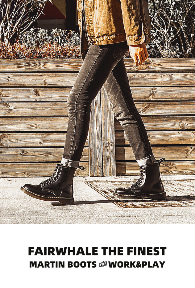 这款马丁靴,鞋面和靴筒全部采用二层牛皮材质,并采用漆皮工艺处理,真皮鞋面柔软细腻,光泽鲜亮,质感十足。与普通马丁靴的橡胶大底不同,直接上升一个档次,采用透明牛筋大底,缓震耐磨,防滑耐穿。经典8孔系带设计,英伦风高帮款式,轻松驾驭休闲商务等多个场合,百搭穿着。