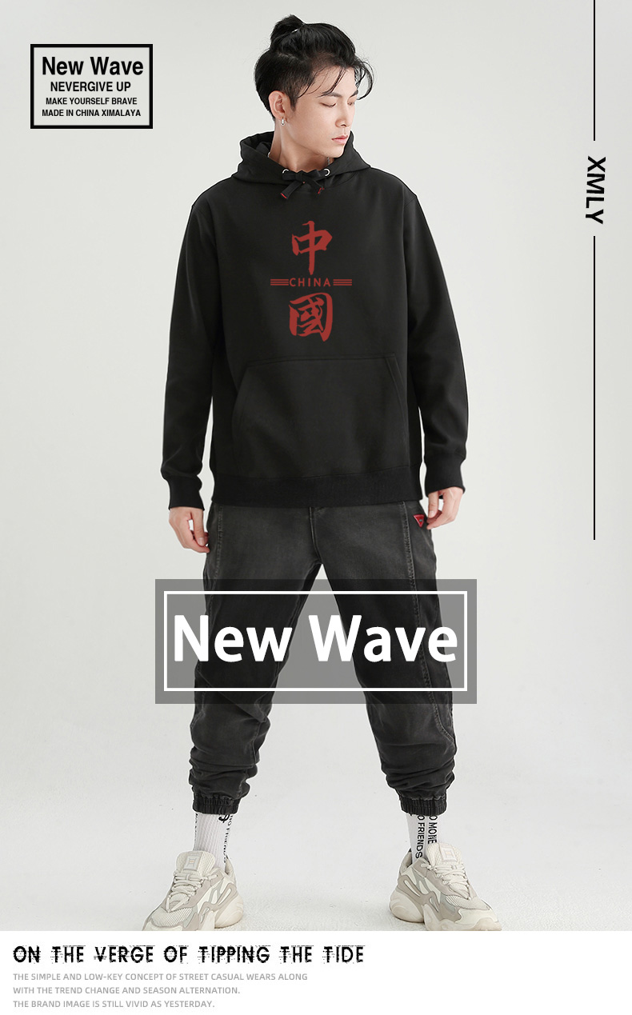 宽松版型,基本不挑身材。衣领和袖口均采用弹性罗纹和包边处理,车线工整,耐磨耐穿。时尚国潮款式,休闲百搭。