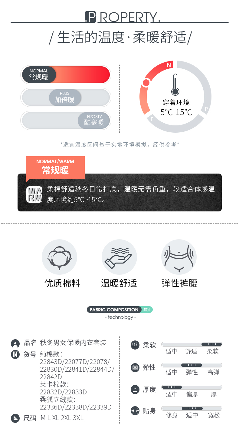 修身版型,上身更加贴身,不易露出。安全活性印染,色泽感好,固色性强,洗涤后不褪色。简洁圆领设计,不易变形,袖口/裤脚为罗纹弹力收口,贴合身体无多余拖沓感,双层叠裆,穿着方便,上身不臃肿。
