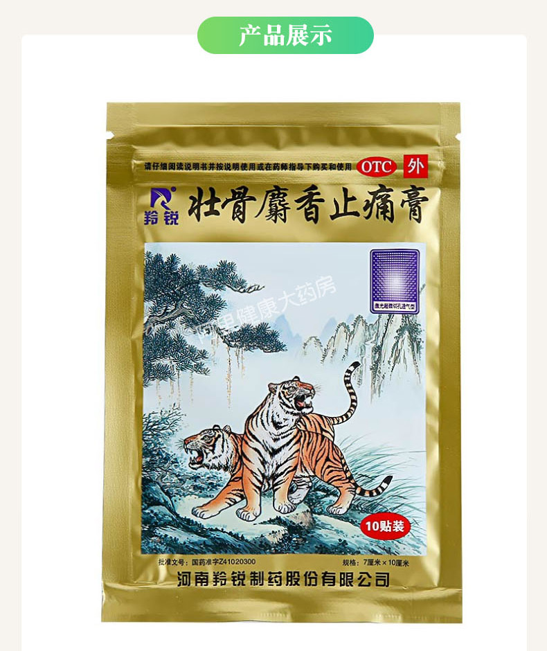这款羚锐壮骨麝香止痛膏主要成分豹骨、麝香、生草乌、生川乌、乳香、没药、冰片、樟脑、薄荷脑、芸香、颠茄流浸膏、水杨酸甲酯等24味中药材,能祛风湿,活血止痛。用于风湿关节、肌肉痛、跌打扭伤。
