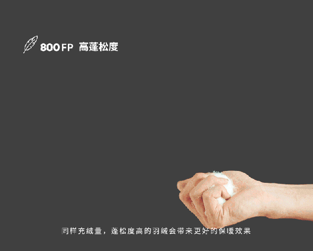 蓬松度高的羽绒服,可以穿的又轻又暖。这款羽绒服填充800蓬松度拒水鹅绒,L码填充160克鹅绒,在保暖效果上: