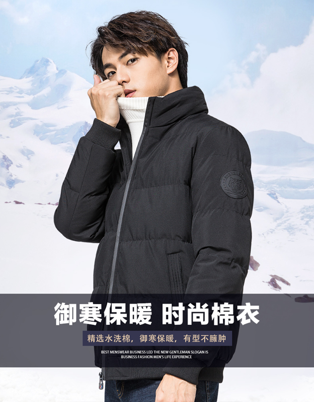 合体修身版型,上身不臃肿,无论胖瘦不挑身材。立领设计,防风保暖。下摆和袖口均采弹性螺纹设计,防止冷风灌入,提升保暖效果。简约纯色款式,没有多余装饰,百搭穿着。