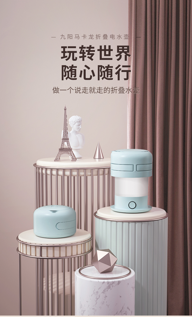 这款Joyoung 九阳便携式折叠电热水壶,婴儿食品级硅胶材质壶身,可耐200℃高温,可折叠设计,压缩后高约75mm,不含双酚A,复合国家认证标准,奥氏体304不锈钢壶底及壶盖,沸腾后自动断电,灯环熄灭,使用安心,550ml迷你容量,相当于1瓶矿泉水水量,宽电压110~240V都可使用,出国旅行更省心,搭配有收纳袋,超贴心超方便。